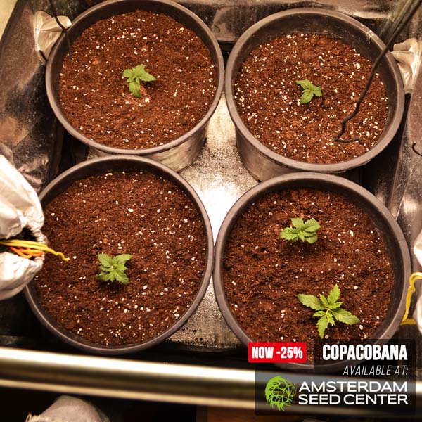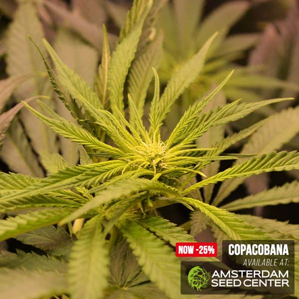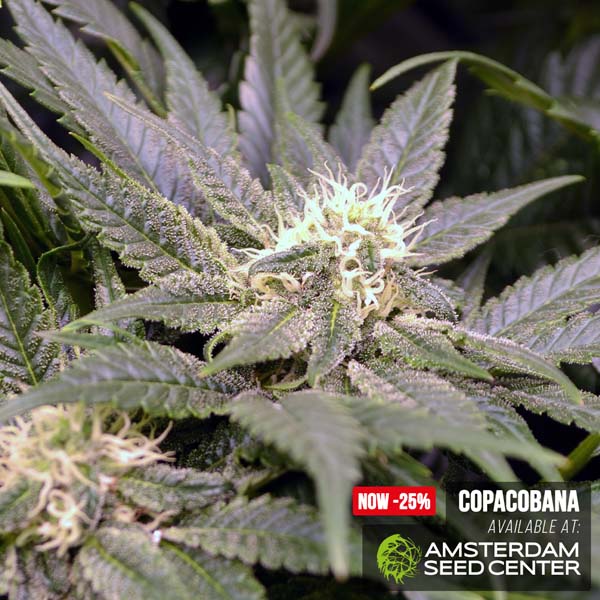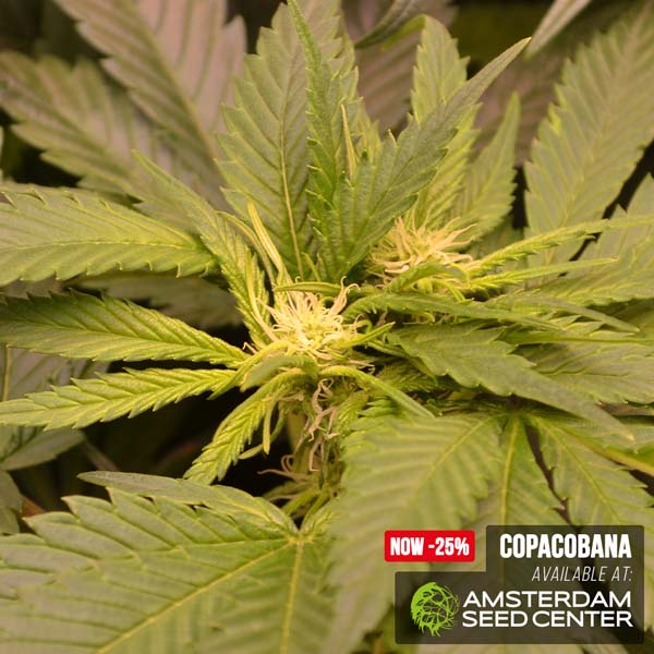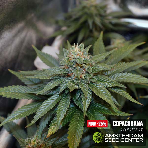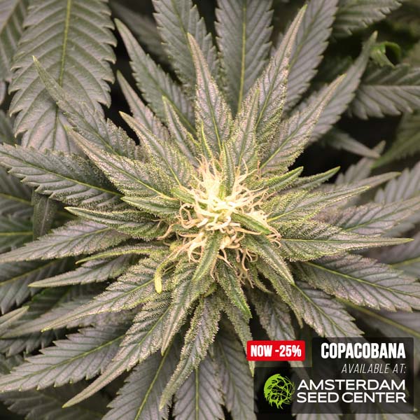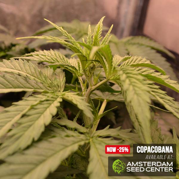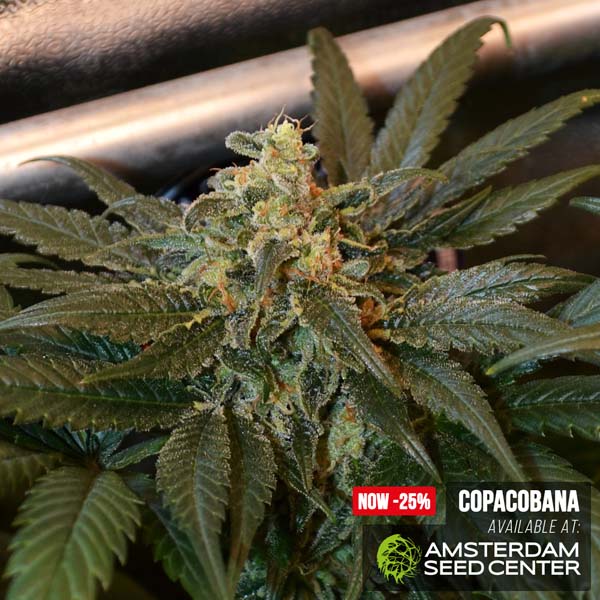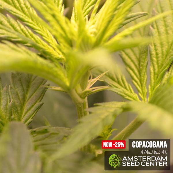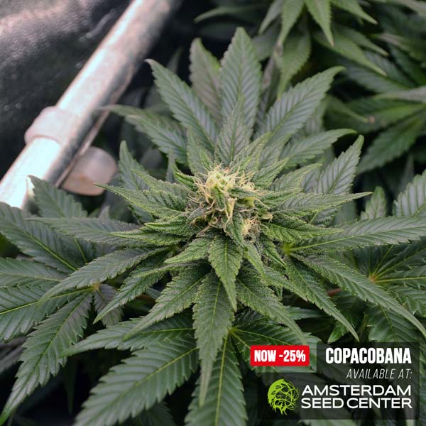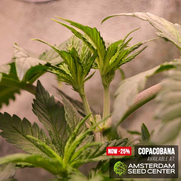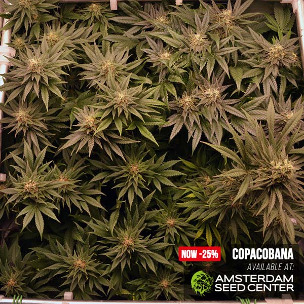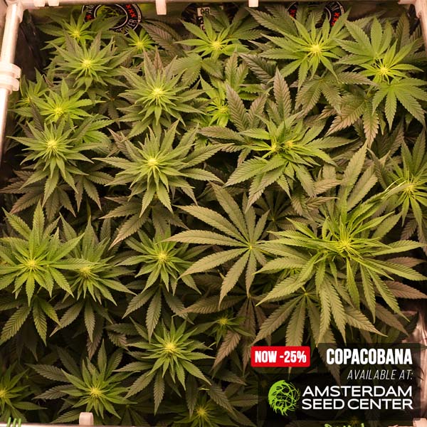 The nutritional needs of her are not very huge. You should avoided too high nitrogen doses, as this can have a negative impact on yield. Copacabana is ideal for a Screen Of Green (Scrog) with 6 plants per square meter. She reacts good in LST and you should keep the height under control with fimming and bondage methods.