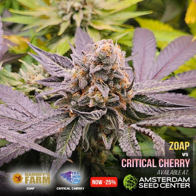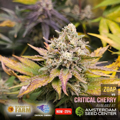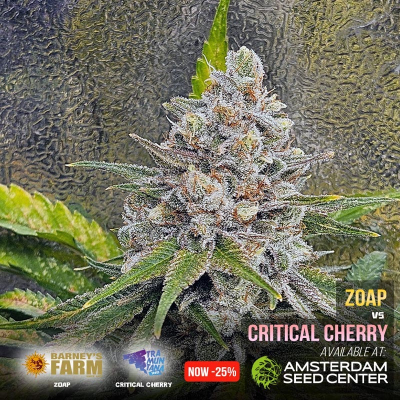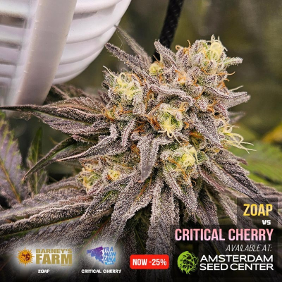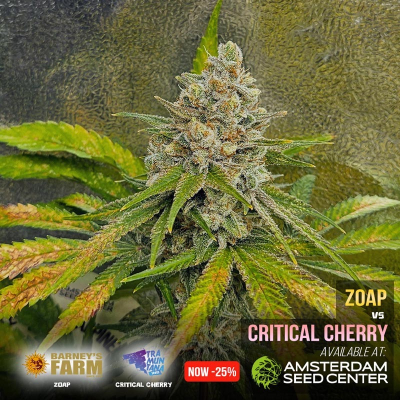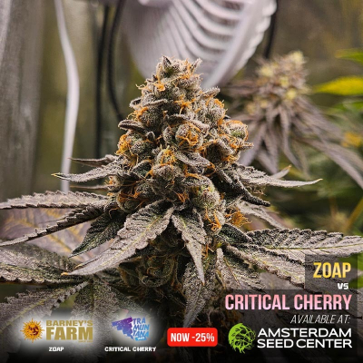 On this page you can find a report of what we are growing in our shop. Currently we are growing the Zoap cannabis seeds from Barney's Farm and Critical Cherry cannabis seeds from Tramuntana Seeds. Amsterdam Seed Center is one of the few places in Amsterdam which you can actually visit to see and smell cannabis growing. This is our Strain of the Shop and we offer this strain with a generous discount.