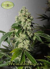 Headbanger is a Sour Diesel OG Kush hybrid, extreme smelly sour lime OG. The Headbanger is Karma’s remake of a Headband-type hybrid. The Sour Diesel IBL mom delivers extremely sour offspring that are less diesel and more sour. The well proven Biker Kush V2.0 male gives it more body and made the bud structure more tight resulting in very impressive yields.