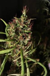 Les plantes Malawi Gold sont tout simplement majestueuses. Ces beautés imposantes peuvent atteindre jusqu'à 3 mètres de hauteur et s'étirent avec la forme classique d'un sapin de Noël, caractéristique des sativas pures. Les branches sont abondantes et largement étalées, supportant des grappes denses de têtes scintillantes de résine. Ses feuilles étroites d'un vert vif et sa structure longue et grêle lui confèrent un aspect sauvage et robuste, révélant sa nature robuste. C'est une plante qui attire vraiment l'attention, qu'elle se balance au gré du vent ou qu'elle se dore au soleil.