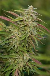 Purple Trainwreck itself consists of Mexican, Afghani, and Thai genetics. So it is a Sativa-dominant Hybrid, which has been crossed with Mendo Purps to create the Purple Trainwreck. Purple Train Wreck has that familiar lemony Train Wreck smell and taste, with a slightly fruitier berry touch thanks to the Purps infuse. This is a really beautiful plant, with intensely colored violet buds with dark red hairs and grows to the size of a monster if you give her all she needs to make you happy.